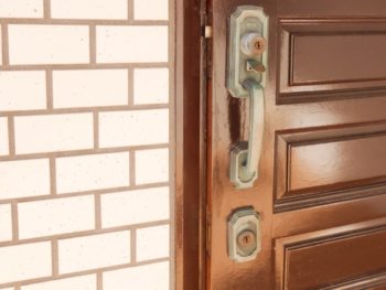 ドア本体が枠に接触しこの状態から閉めるのが大変なことに…シリンダーも錆びついてしまっていました。