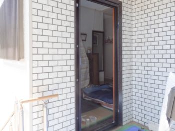 完成です!木製からアルミドアに変わったのでメンテナンスは非常に楽になりました。ドアリモS02pブラウン色