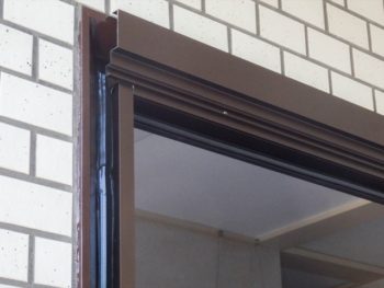 グルリと新旧枠の間にシール打ちをして、外額縁の上部の取り付けに入りました。