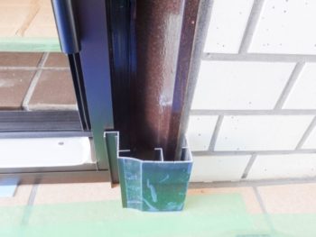 外額縁の縦部材をビスで固定します。縦部材は上の部材に被さる様に取り付きます。