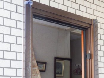 写真では非常に分かりにくいのですが、水準器で水平垂直をだし新設枠を取り付けしたところです。