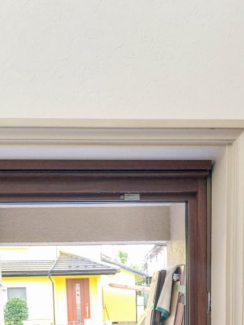 室内側に内額縁というカバー材を取付する作業に入っています。上部が付きました。