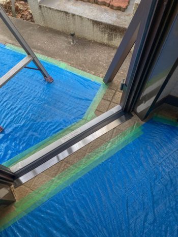 下枠の室内側に枠との段差がないので下枠化粧カバー (ステンレス製) を取付しました。
