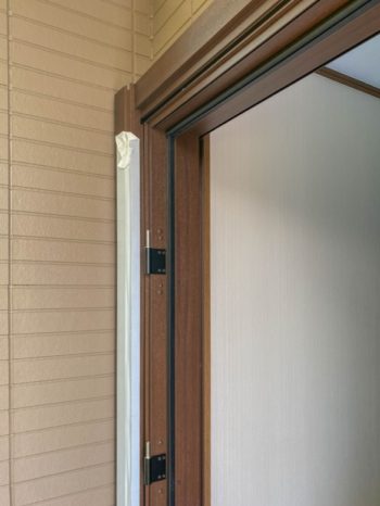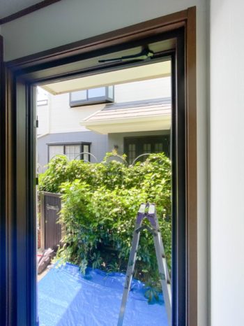 外額縁のシール処理が終わったところ。この後下枠正面にも。