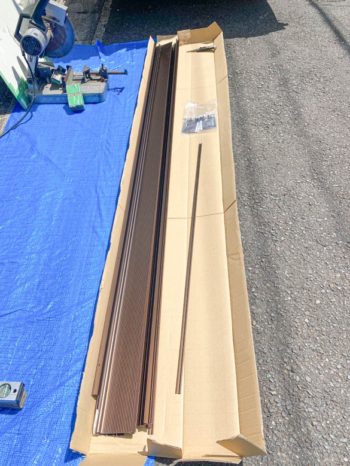 外部カバー材の上部から取り付けします。分割式のため正面部材と奥行き部材に分かれています。