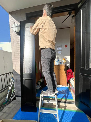 画像がありませんが、新規の扉を建て込み実際の締まり具合を確認しながら本固定します。