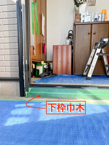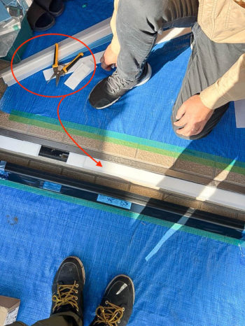 既存の下枠に新設枠を乗せるので、水平を出すため調整材(スペーサー)で合わせています。スペーサーは厚み1mm、3mm、5mmとあります。