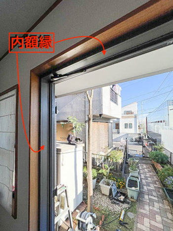 新設枠は取り付けされたままだと既存の部分が見えて見栄えが悪いので、内外共に化粧額縁を取り付けします。写真は内額縁が取り付けされたところ。