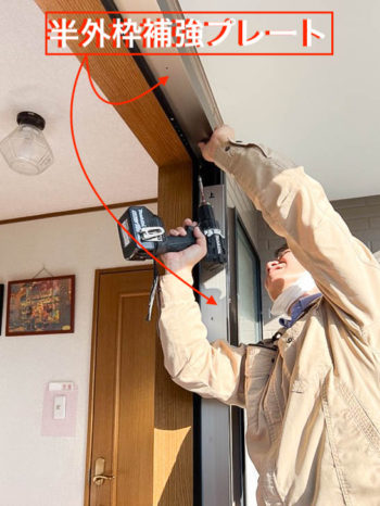 既存枠の種類によって必要になるのですが、おおよそ半外付枠と内付枠に分かれます。今回は半外付枠ですので、半外枠補強プレートを用意してきました。