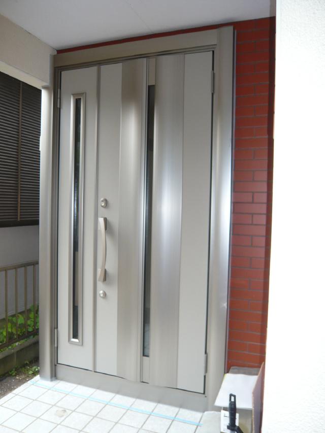 片袖ランマ付きから親子ドアタイプに変身です。ランマを無くした分本体の高さが増したので以前より大きく見えます。