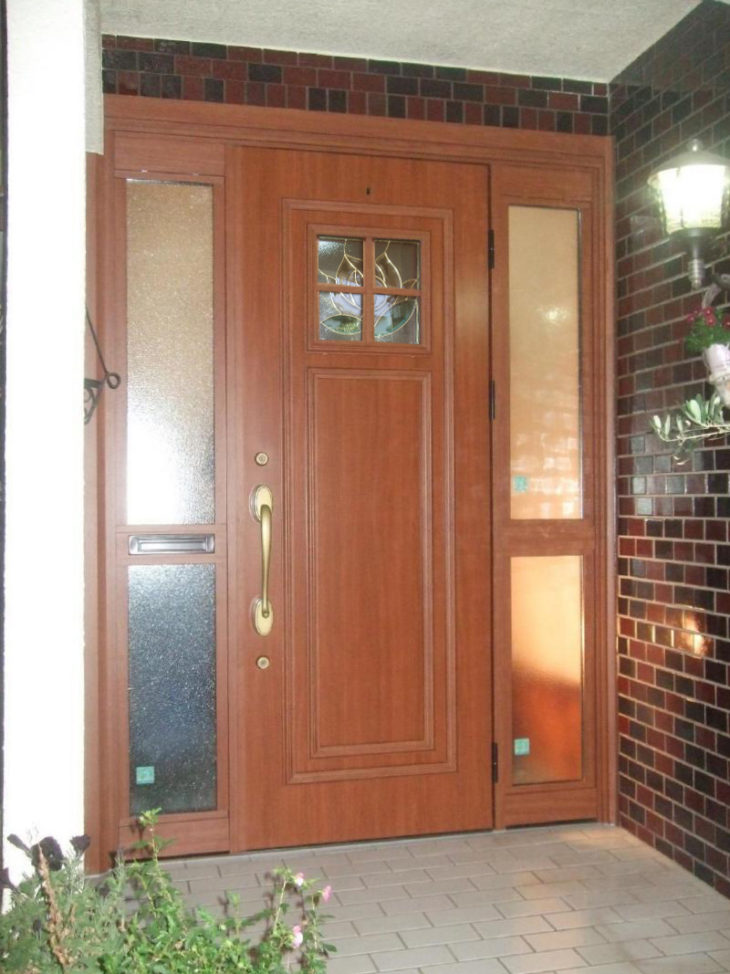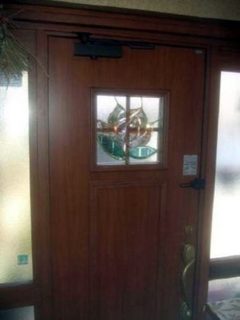後日、玄関本体のガラスをステンドグラスに交換いたしました。さらに素敵な玄関になりました。