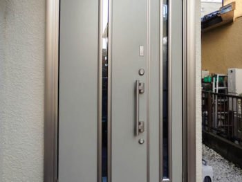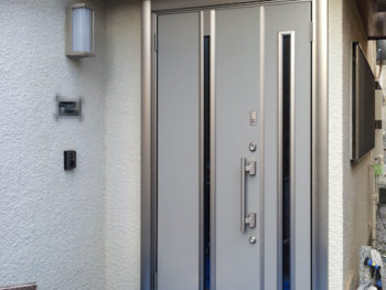 1日で工事完了のLIXILリシェント玄関ドア断熱K2仕様をお薦めしました。断熱K2仕様は寒い地域にも適している仕様です。 そして玄関の鍵は『簡単タッチキーシステム』をご採用いただきました。 専用リモコンをバックやポケットに入れたまま、ドアに付いているタッチボタンを押すだけで開錠できる便利なシステムです。荷物が多い時など鍵を探す手間もなく、とても便利なシステムです。 |