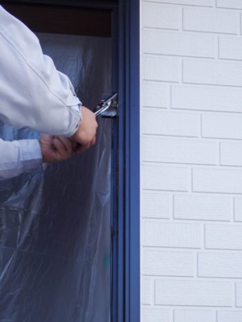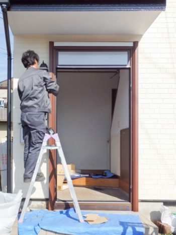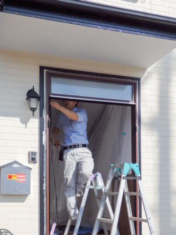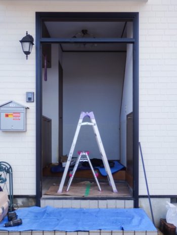 まずは玄関扉やランマガラス、枠周りの部品類を外します。