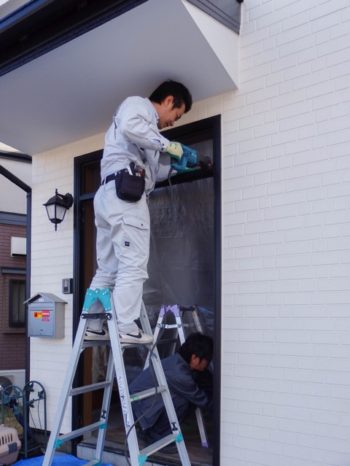 外額縁と外壁の取り合い部にシール処理します。