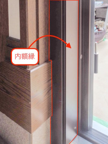 【外側】縦枠に額縁の縦部材を固定します。