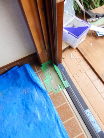 取り除いた方立部分はモルタルで補修します。※事前にお客様にはご説明済