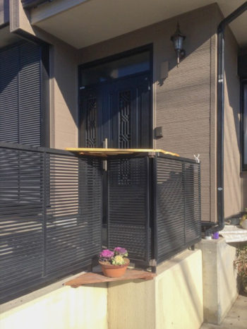外観左側が入隅納まりになっていますが、カバー工法での玄関リフォームですので、まったく問題ありません。