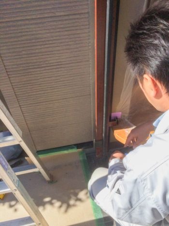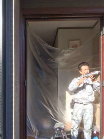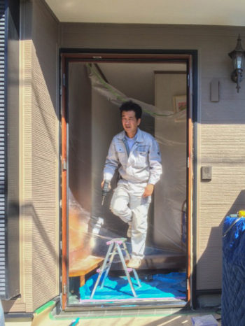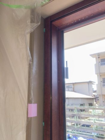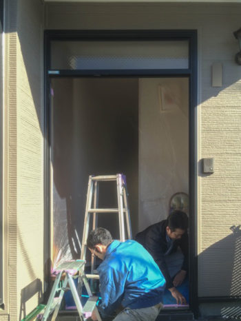 仕上げに、シール処理をしています。そして外額縁も取り付けされました。