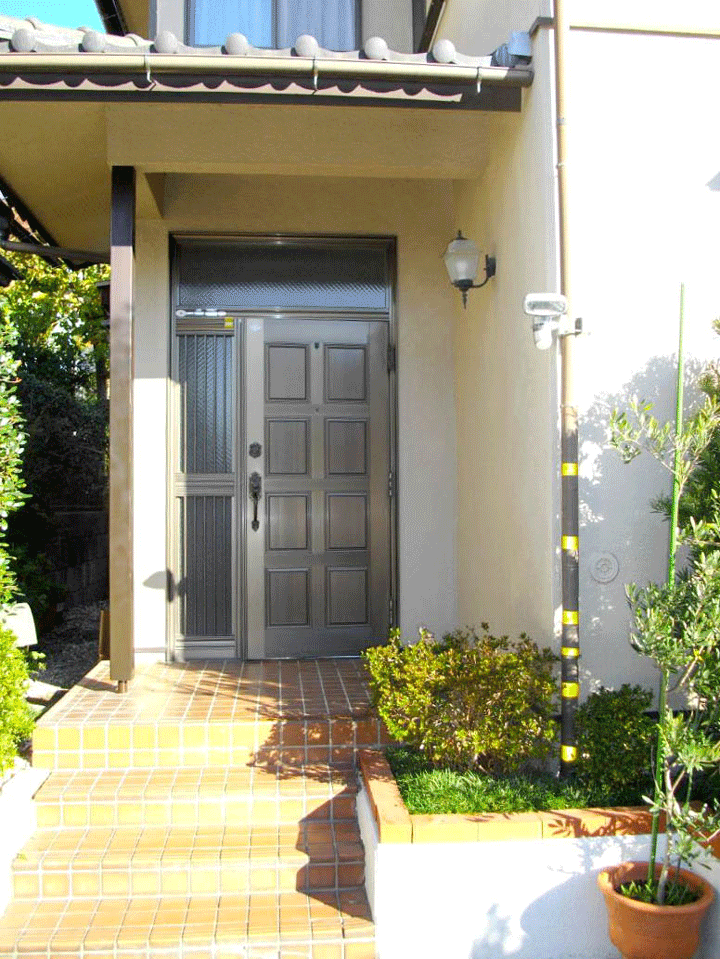 今回の玄関リフォームでは片袖片開きランマ付きの玄関から親子タイプ(ランマなし)の玄関へと変わりましたので重厚感もあり、また大きな荷物も搬入しやすくなりました。