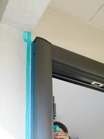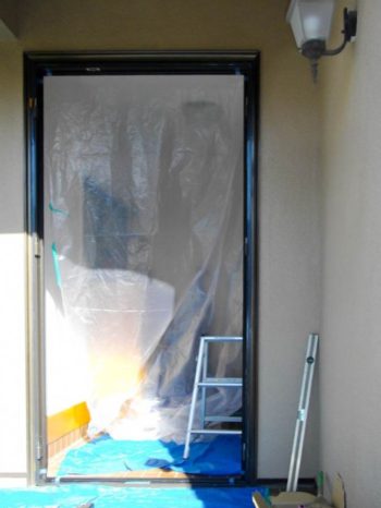 分かりづらいですが、新しい玄関の枠を固定したところです。