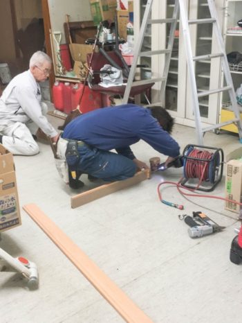 新しい枠を設置する前に、解体した小口を修繕、補強しました。