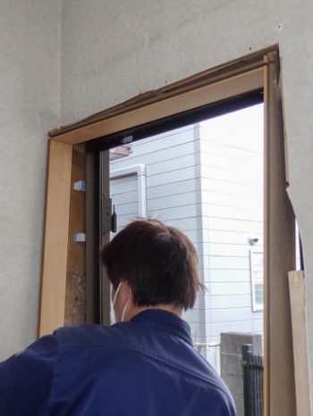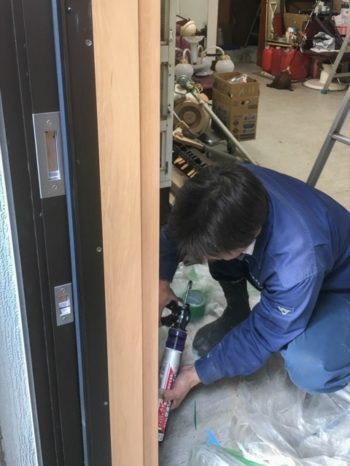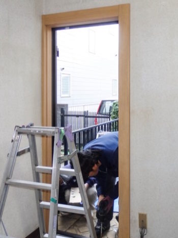 内部額縁の取り付けが完了しました。この後、ドア本体を吊り込み調整すれば終了となります。