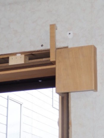 室内のケーシング取り付けが始まりました。すでに右側にはワイドケーシングが取り付いています。
