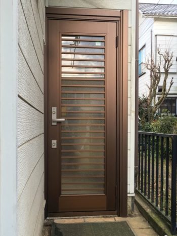 【工事後 外観写真】ドアのガラスは、防犯ガラス入りにしました。