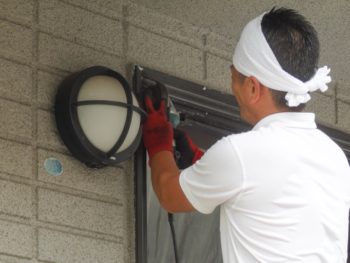 外部のカバー材を壁面に合わせて加工し取り付けします。このカバーにより新旧枠の継ぎ目は隠れてしまいます。