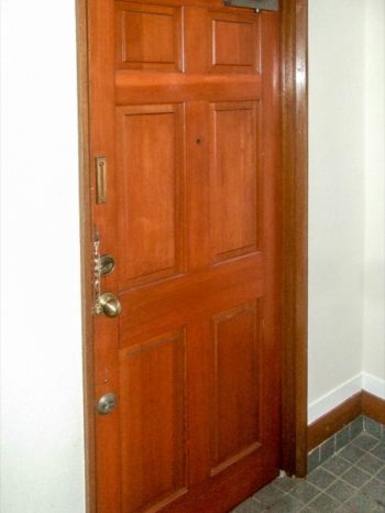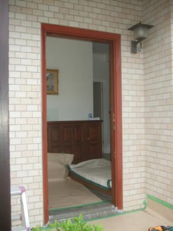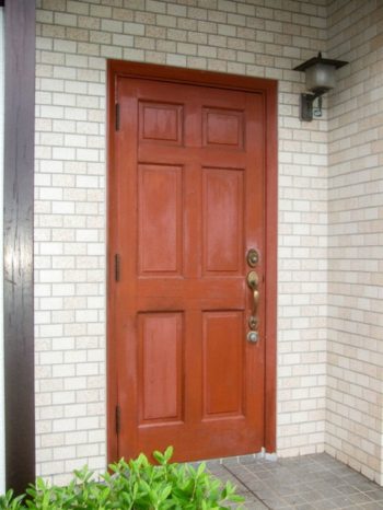 【外観】雰囲気のあるとっても素敵な木製玄関ドアですが細部には傷みが発生しており、隙間も生じていました。