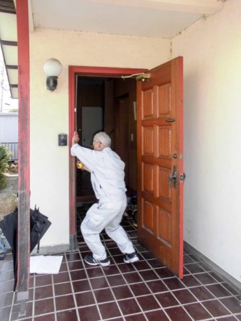 木製の玄関ドアだったこともあり歪みや、傷みが発生していました。