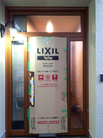 それぞれの工事内容ごとにお見積りを提出し、玄関ドア交換(カバー工法)・勝手口ドア交換(カバー工法)・電動式シャッター交換(壁カット工法)すべてをご採用いただく事ができました。 その中でも今回は、玄関ドア交換工事の様子をご紹介します。 |