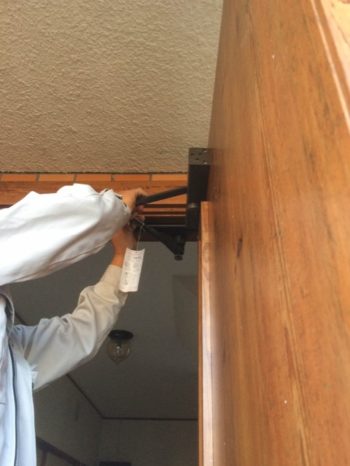 新規枠をビスで固定しています。水平垂直やねじれを確認しながらスペーサーを入れ慎重に位置出しをします。