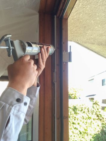 既存枠と新規枠の隙間は建て付けが決まればこの後ぐるりと3方シーリング処理を施します。