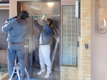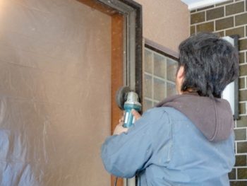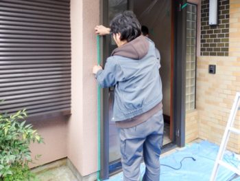 仕上げのコーキング処理をする。スタッフ/トザワです。