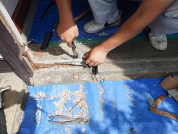 木製の下枠部分を丁寧にはつります。
