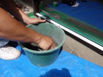 下枠部分をモルタルで補修します。