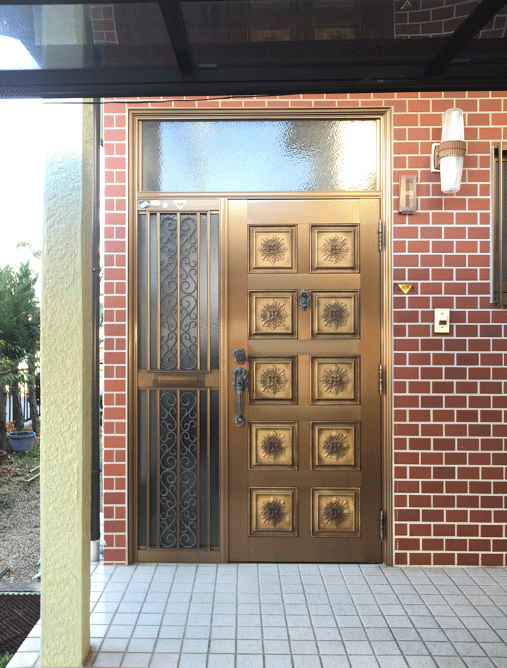 | お客様のご要望 | 『今の玄関ドアはワンロックで防犯上問題かと・・・』 『出来ればランマなしの大きな玄関ドアにしたくて・・・』 そんなご相談をいただきました。 |