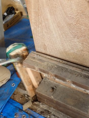 タイルが外れたところでさらに下地の木の部分も撤去します。