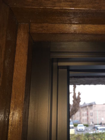 内部額縁左と上部が取り付いたところです。綺麗にカバー出来ました。カバー工法のキモの部分です。