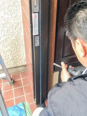 さらにドア本体を吊り込んで実際のチリや戸締り等を再度調整します。