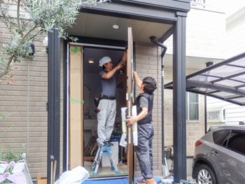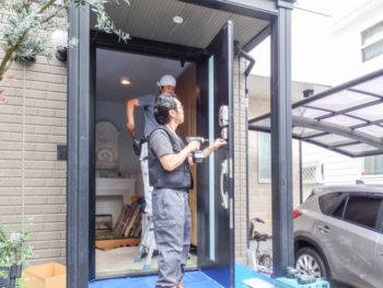 | お客様のご要望 | 電気錠が壊れて使えなくなり、鍵屋さんに「テンキー式」をつけてもらったがこちらも使えなくなった。 外壁リフォームを予定しているので、先に玄関リフォームをお願いしたい。 |