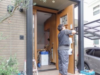 『この玄関ドアのデザインや色に合った外壁塗装を家族で相談しなくちゃ♪』