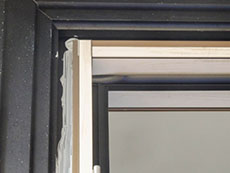 内側から見える新旧枠の取り合いを隠すため室内のカバー材(内額縁)を取り付けしています。
