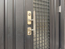 新設の枠を仮に取り付けしドアを一旦吊り込み建てつけ具合の確認をします。