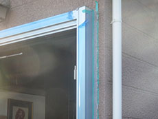 外額縁の上部、縦を壁との取り合いに変成コーキングします。