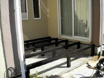 まずは、アルミ製の大引きを設置です。アルミ製ですので、錆びや腐食の心配もありません。この上に、リウッドデッキを設置しました。