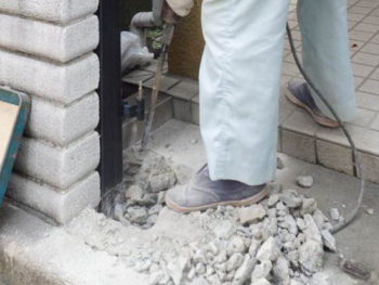 回はエクステリアならおまかせ!工事スタッフ/片浜。手慣れた感じで作業中。