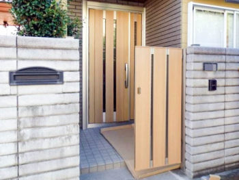 | お客様のご要望 | 玄関の交換(ドアリモ)してもらって気に入っているのですが、門扉の色が暗い感じで新しい玄関に合わないので新設した玄関のような木目の明るいタイプの門扉にしたいと思っています。 |