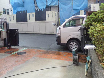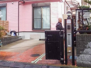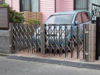 | お客様のご要望 | 駐車スペース幅いっぱいに伸縮タイプの門扉が設置してあり、車も人の出入りの際もそこからになってしまうために、ちょっと使い勝手が悪いし部品の一部が壊れてしまっていて開閉しにくい。 カースペースとは別に開き門柱を設置すれば使いやすいかも・・・ |